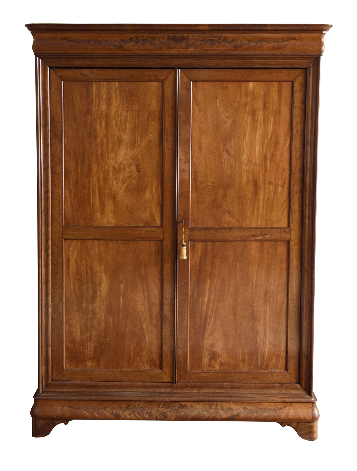 A LARGE WALNUT TWO DOOR WARDROBE, CIRCA 1860 (back right foot has faults) (THIS ITEM MUST BE REMOVED BY CARRIERS AT THE CUSTOMERS EXPENSE)