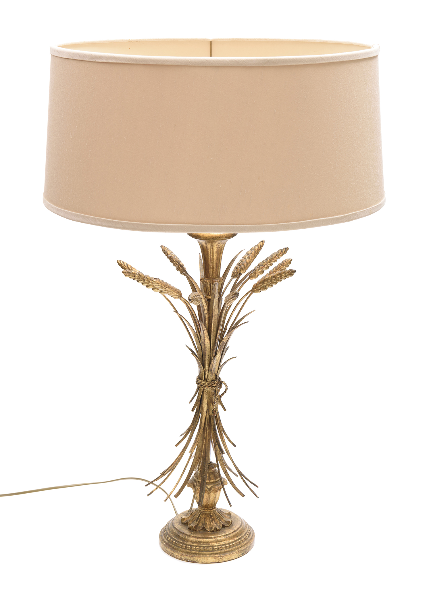 A FRENCH GILT METAL WHEAT SHEATH SHAPED LAMP
