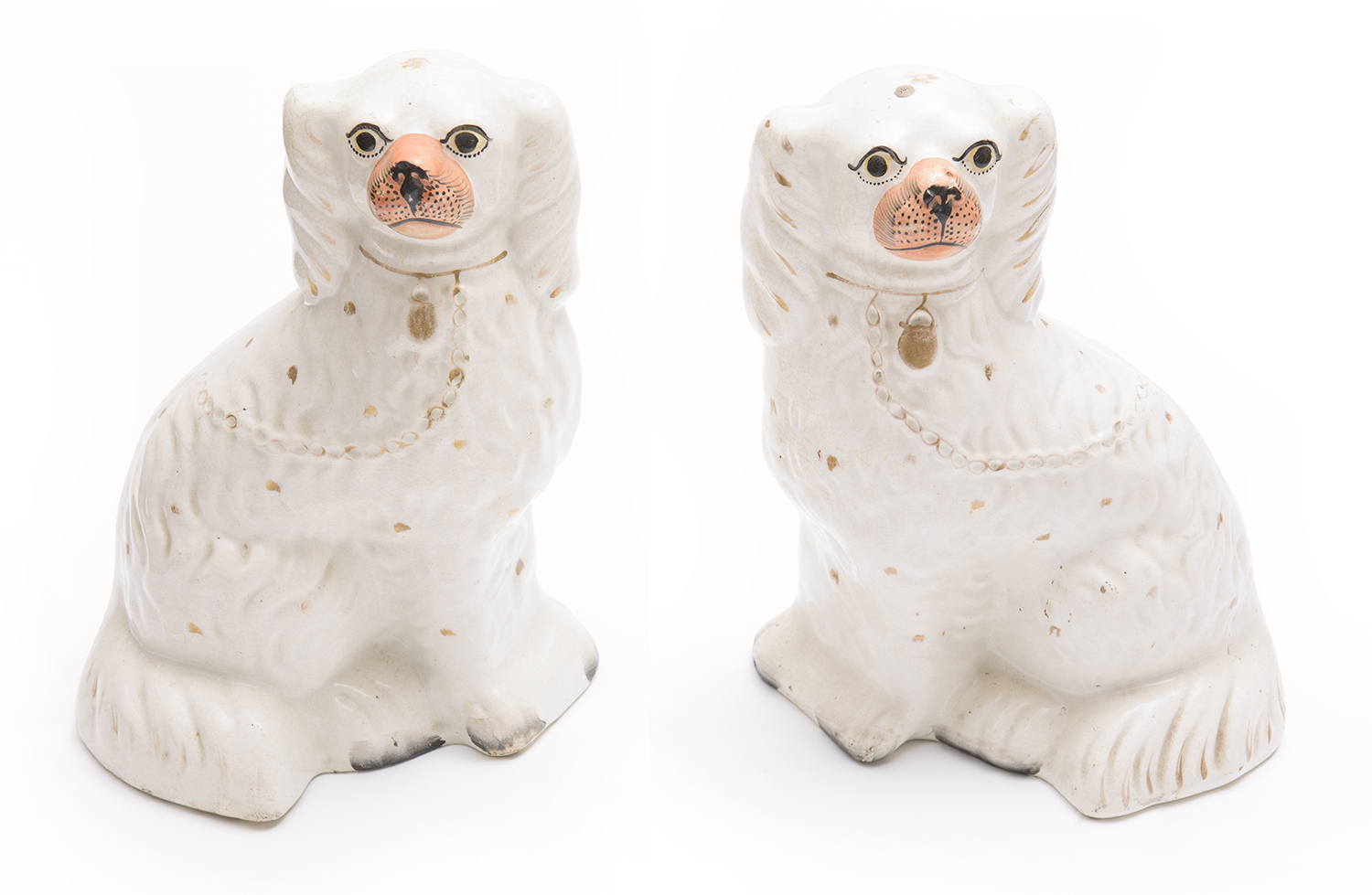 A PAIR OF STAFFORDSHIRE SPANIEL FIGURES