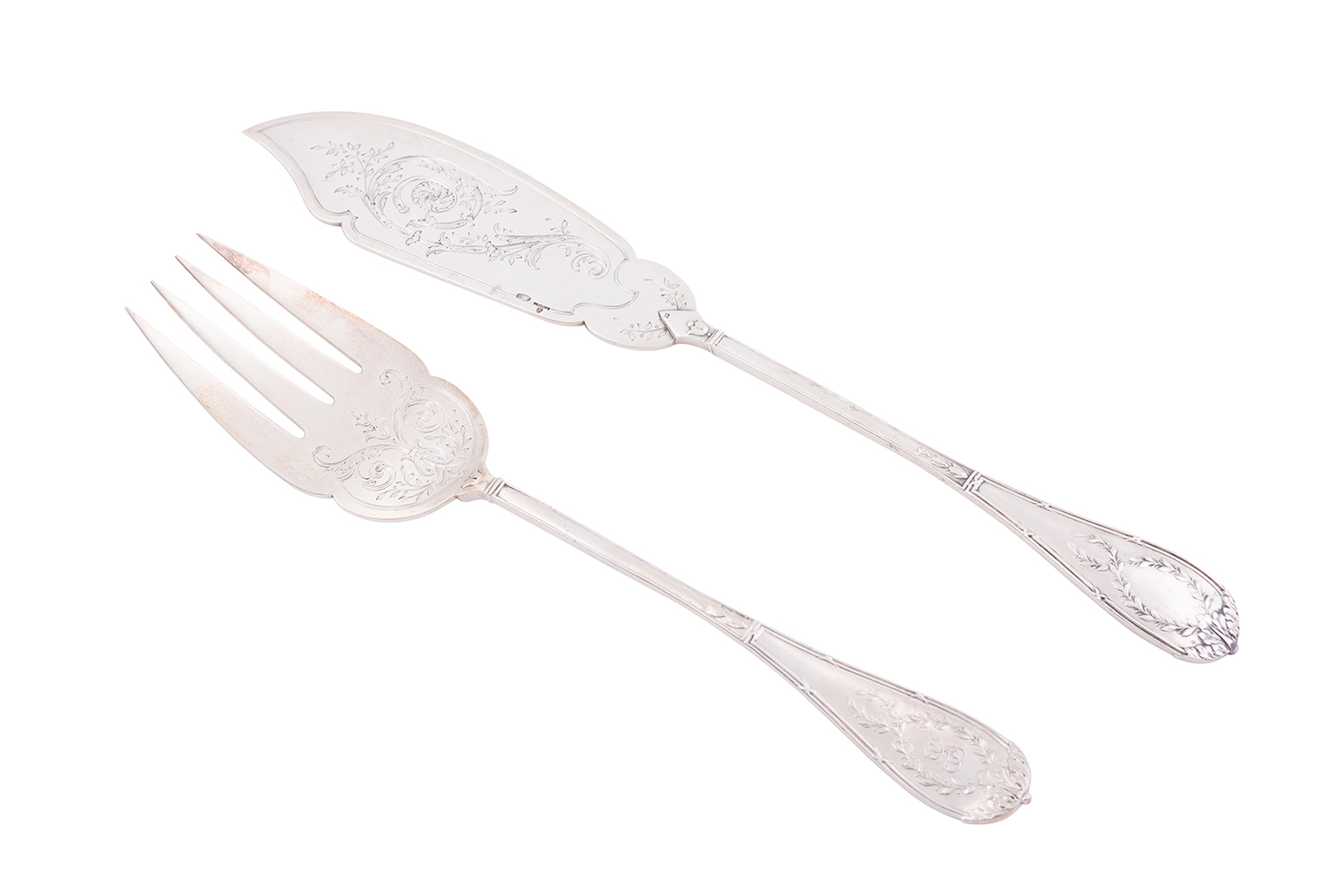 with wreath and acanthus leaf decoration, hallmarked 88 zolotnik, 279 gms silver, the knife 30.5cm long