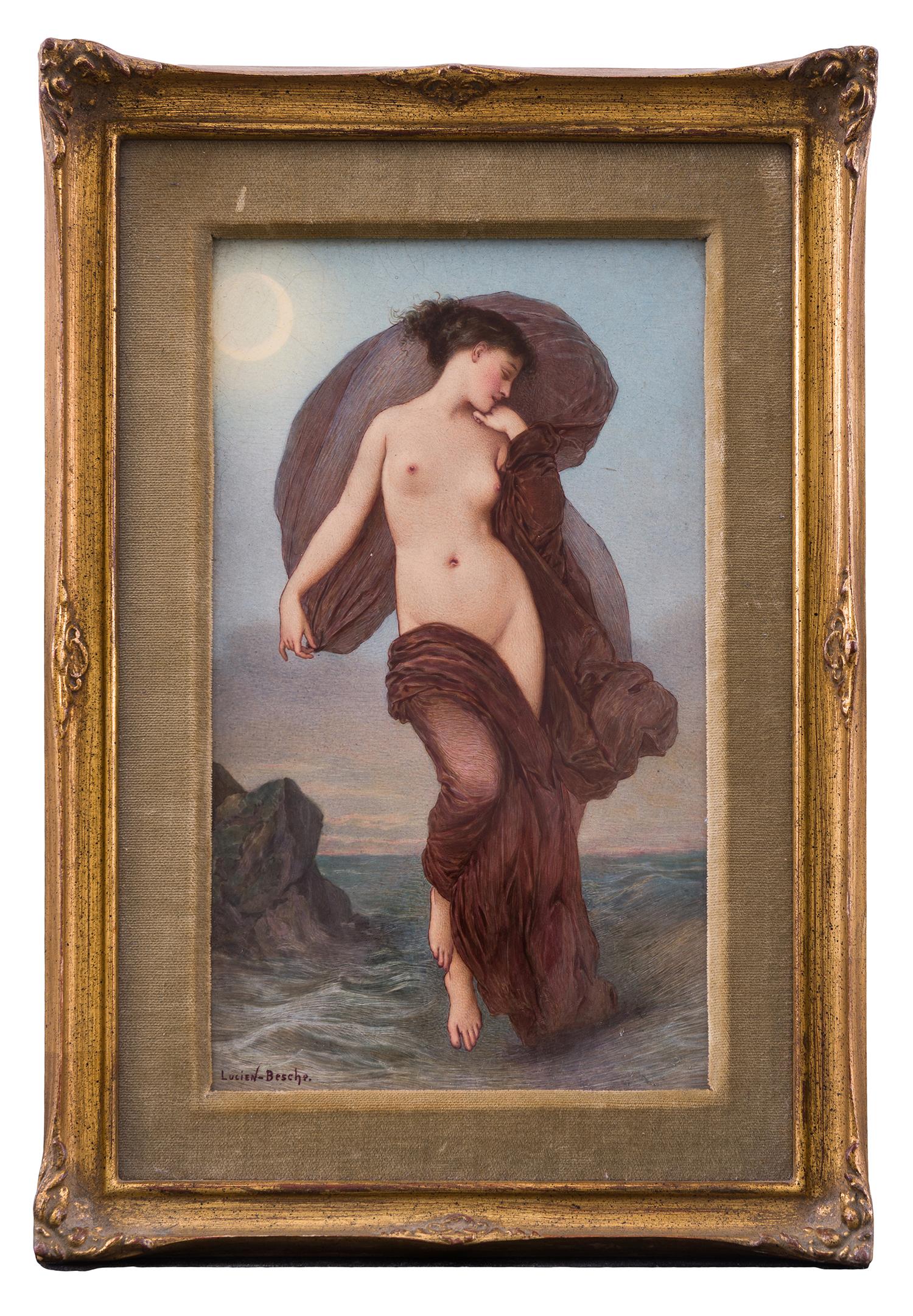 Note: Lucien Besche was a French artist, who moved to England in 1871 and begin working for well known porcelain manufacturer Minton. After a short period at Minton, Besche moved onto to W. T Copeland from 1872-1885, working as a freelance artist. in 1885, he moved to London to develop his craft, not only in paintwork but also drawing for magazines and illustrations for Opera costumes. Besche is mostly known for his figurative work, and was featured at the following exhibitions: 1873 Universal Exhibition, Vienna & Royal Academy of Arts from 1883-1885. Besche died in 1901 after a successful artistic career.