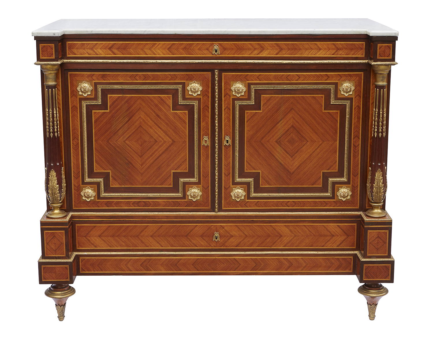 A FINE LOUIS PHILIPPE PERIOD KINGWOOD PARQUETRY MEUBLE D'APPUI (on view only in Sydney, items to be collected from Sydney at purchasers expense)