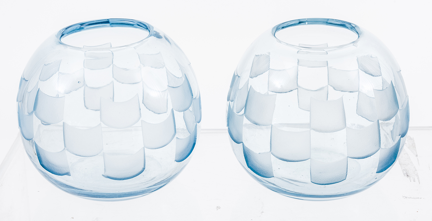 A PAIR OF ART DECO BLUE GLASS VASES BY LE GRAS