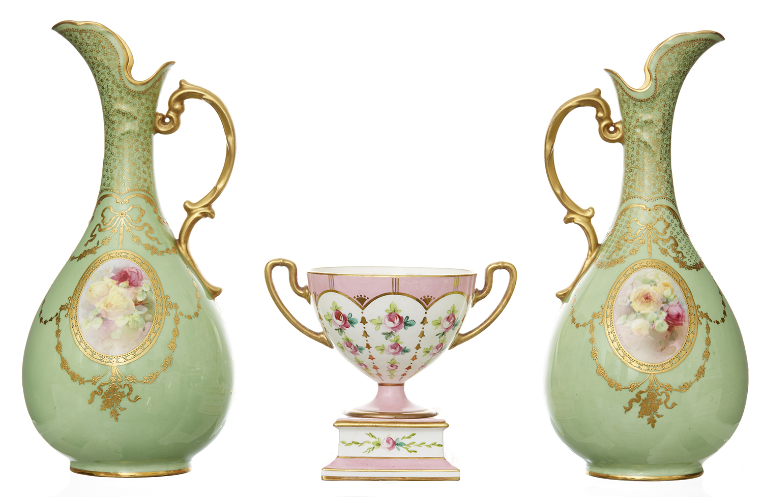 Each hand painted and picked out in gilt, tallest 24cm