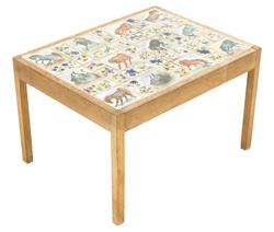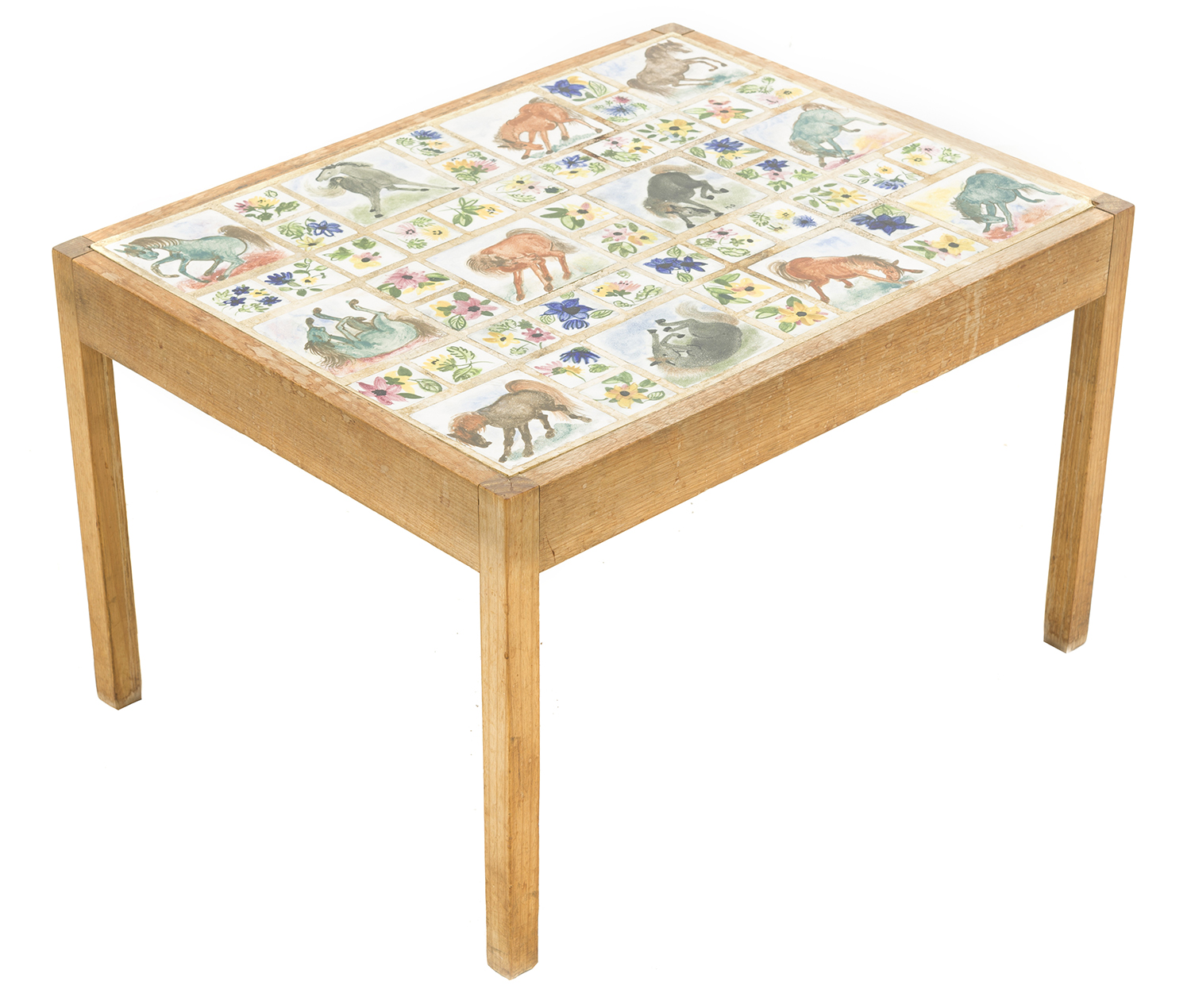 glazed ceramic tiles on timber table
