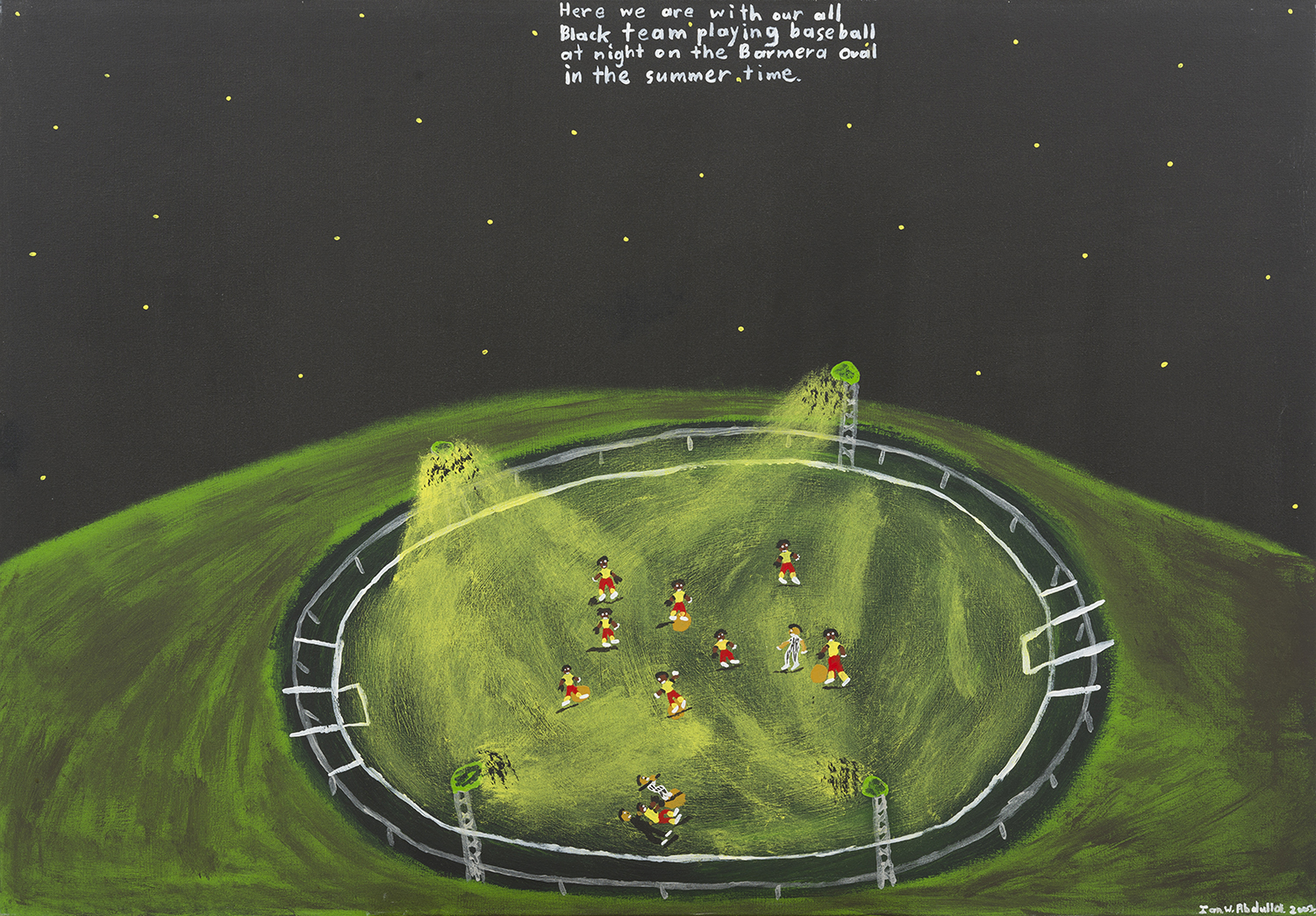 inscribed upper centre: Here we are in our all/ Black team playing baseball/ at night on the Barmera Oval/ in the summer time