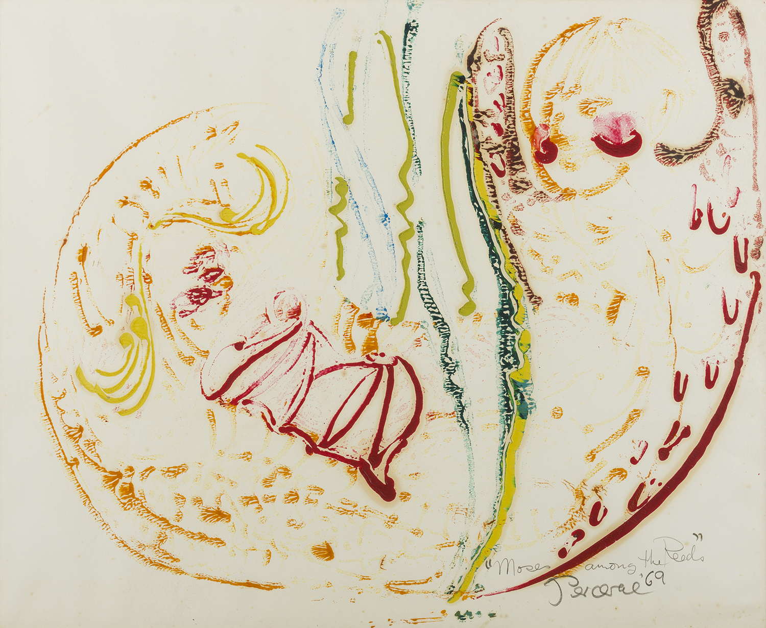 titled signed and dated lower right: "Moses among the Reeds" / Perceval '69