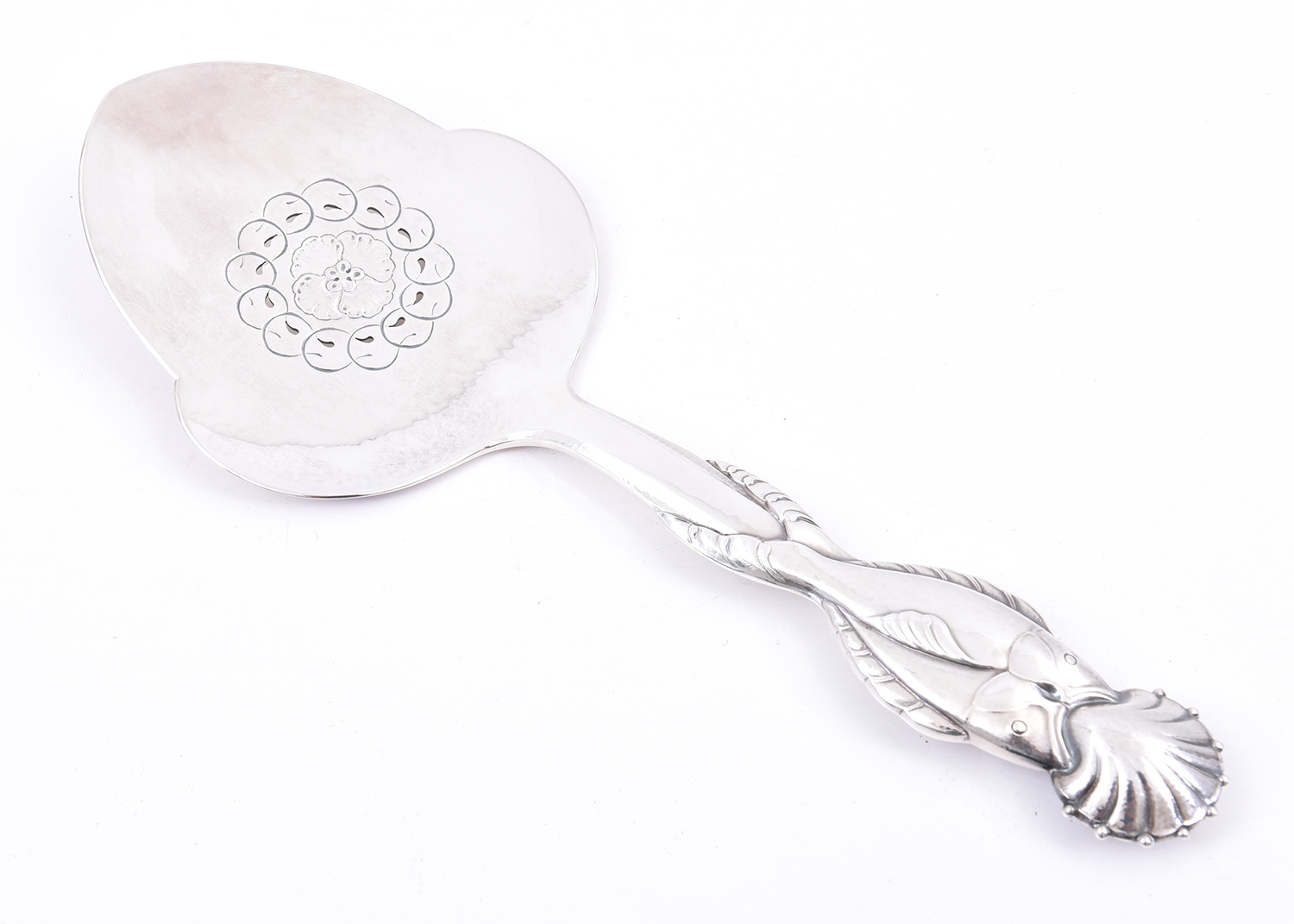 fish and shell motif, marked 55, 174 gms silver, 17cm long