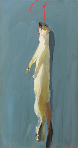 Throughout Boyd's Narcissus-Colonial paintings he repeatedly models animal skeletons and carcasses, sketched from an earlier journey through Central Australia surrounded by skulls, ribs, spinal cords and the hides of animals. Arthur continued with this imagery back in Suffolk by commemorating the stoat, still lissom in death, in several lifesize paintings to be exhibited at Fischer Fine Art in London.