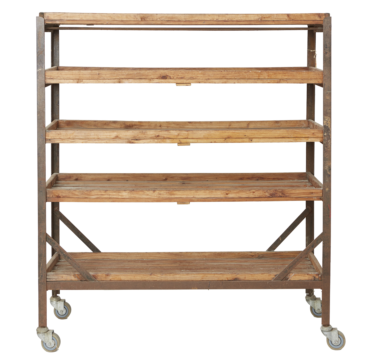 AN EARLY 20TH CENTURY INDUSTRIALTALL STORAGE RACK