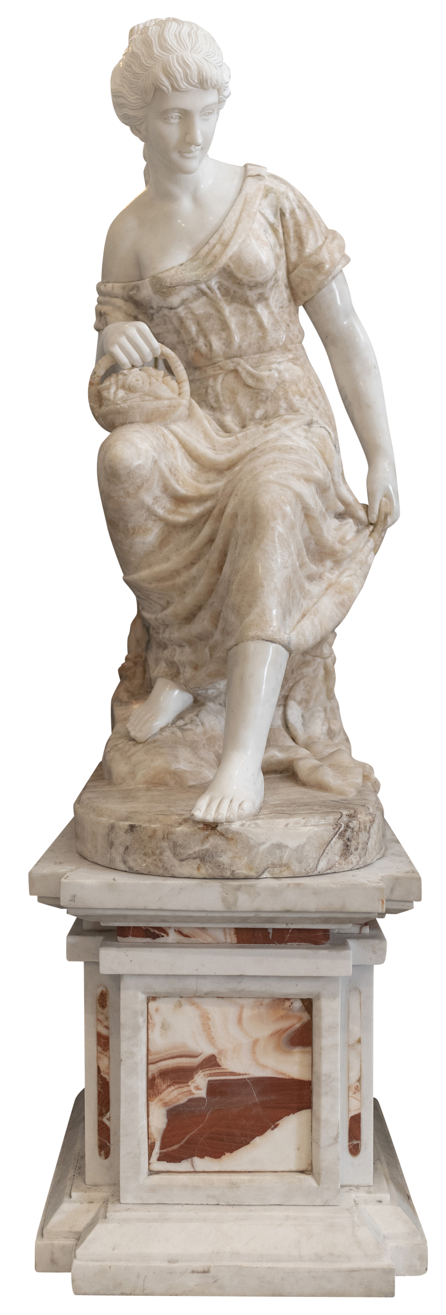 AN IMPRESSIVE CLASSICAL CARVED MARBLE SCULPTURE OF A SEATED WOMAN