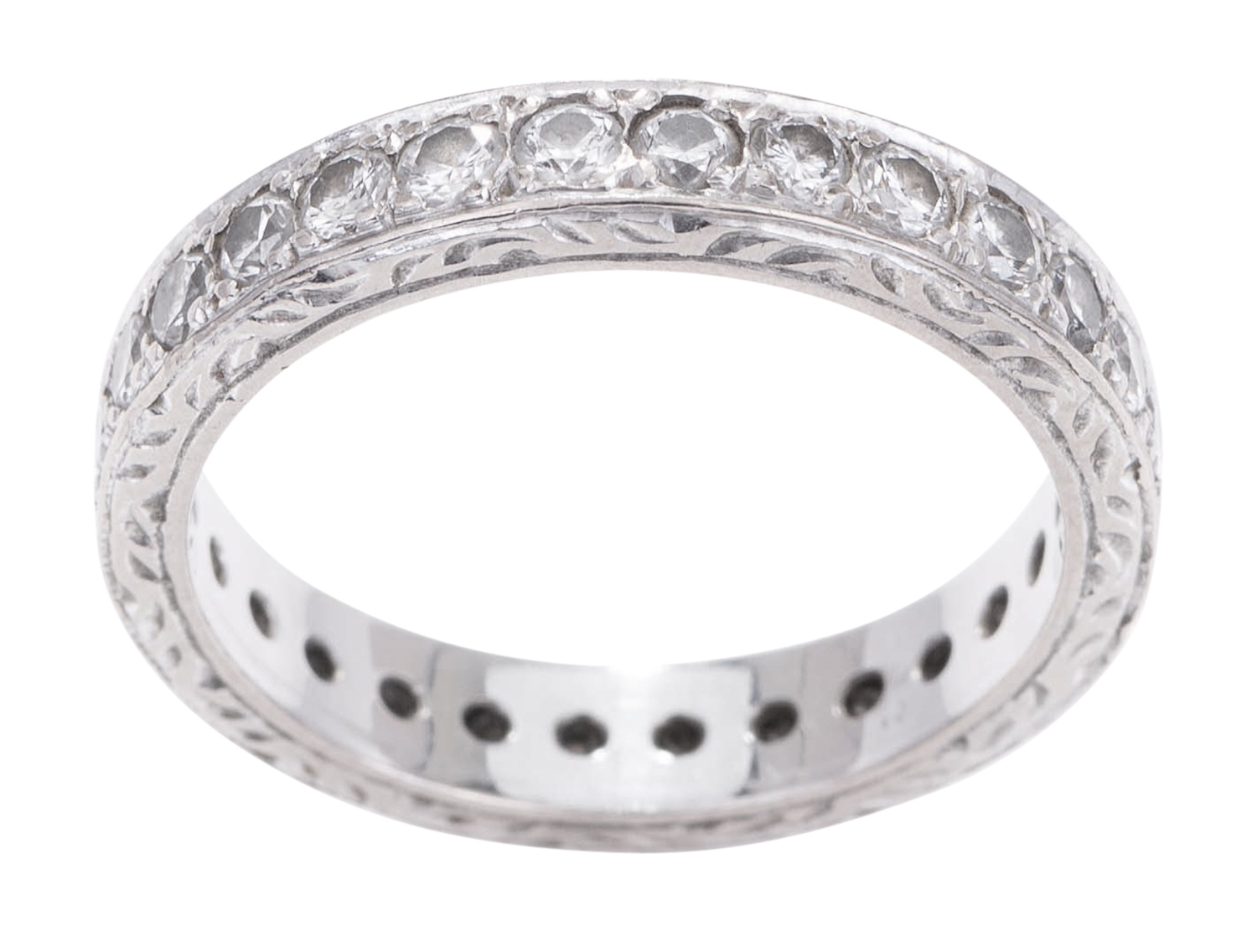 The diamond set band presents in overall very good condition with all stones secure in the setting. Diamonds of good commercial colour and quality.