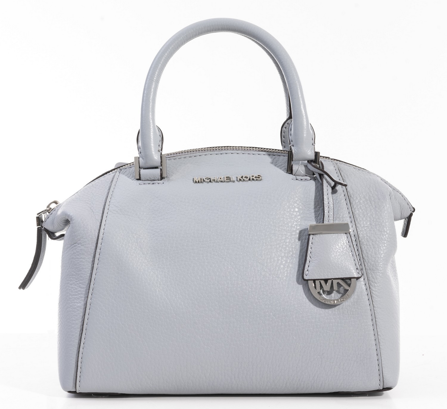 Styled in pebble leather with silver metal hardware and long strap, 20 x 24 x 11cm.