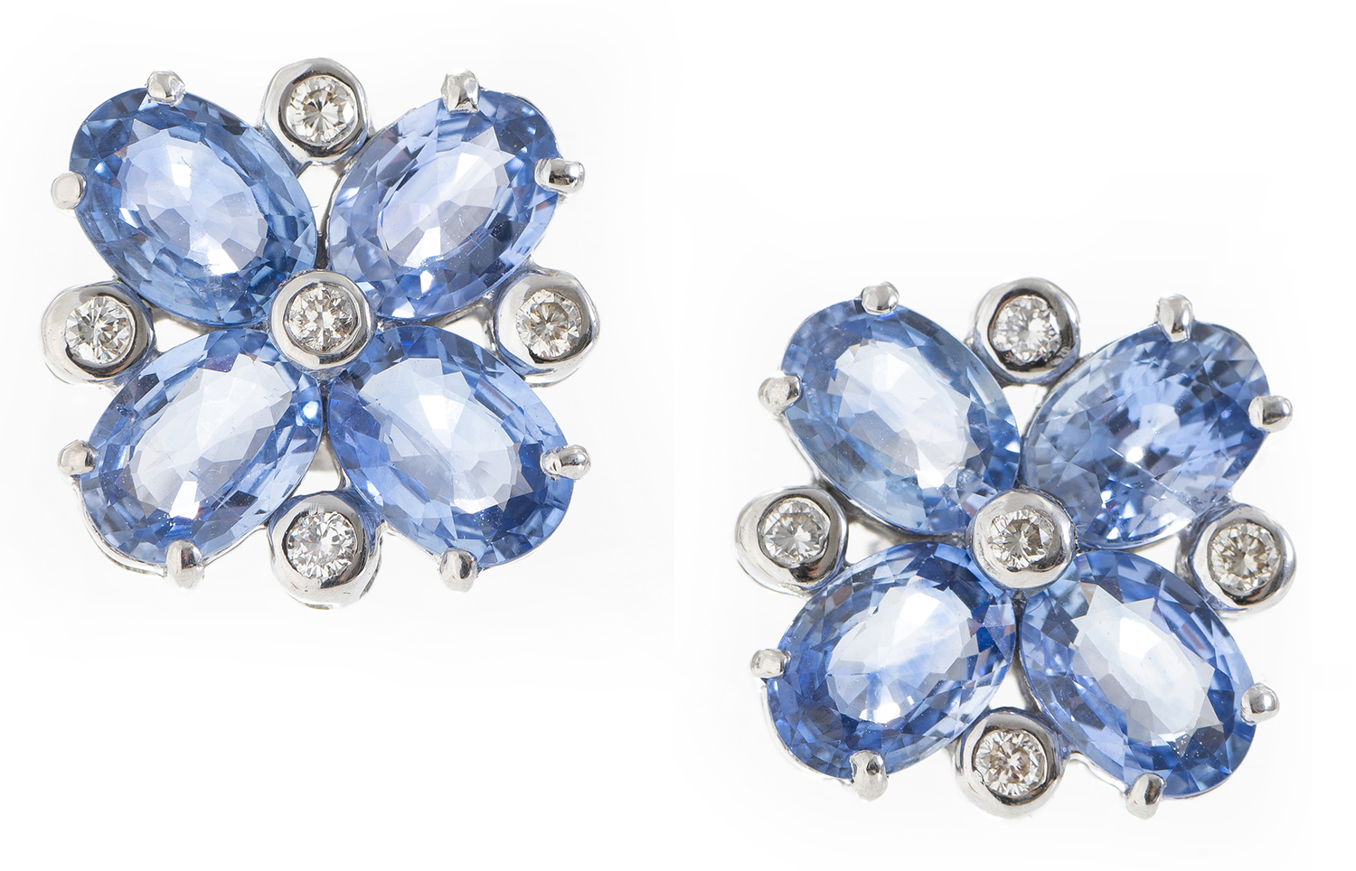 The earrings present in very good condition. All stones secure in their mounts. Sapphire are of light blue colour. Diamonds of good commercial colour and quality.