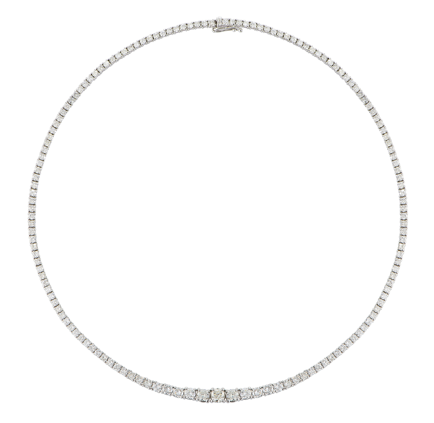 A DIAMOND RIVIERE - Comprising one hundred and fifty one graduating round brilliant cut diamonds totalling 8.40cts, in 18ct white gold, total length 405mm.