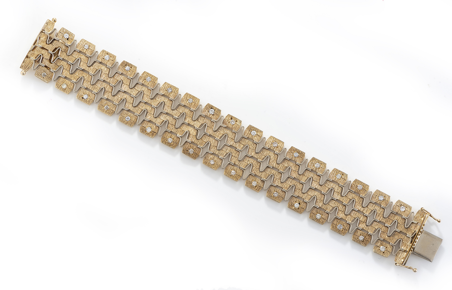 The bracelet presents in good to very good vintage condition. All links secure. Diamonds total 1.00cts. Approximate total weight 48gms.
