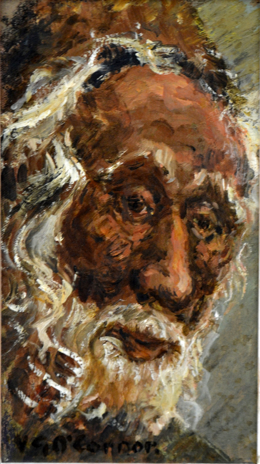 VIC O'CONNOR, STUDY FOR THE PILGRIM FROM GORKYS 'LOWER DEPTHS', OIL ON CANVAS BOARD, 24.5 X 14 CM