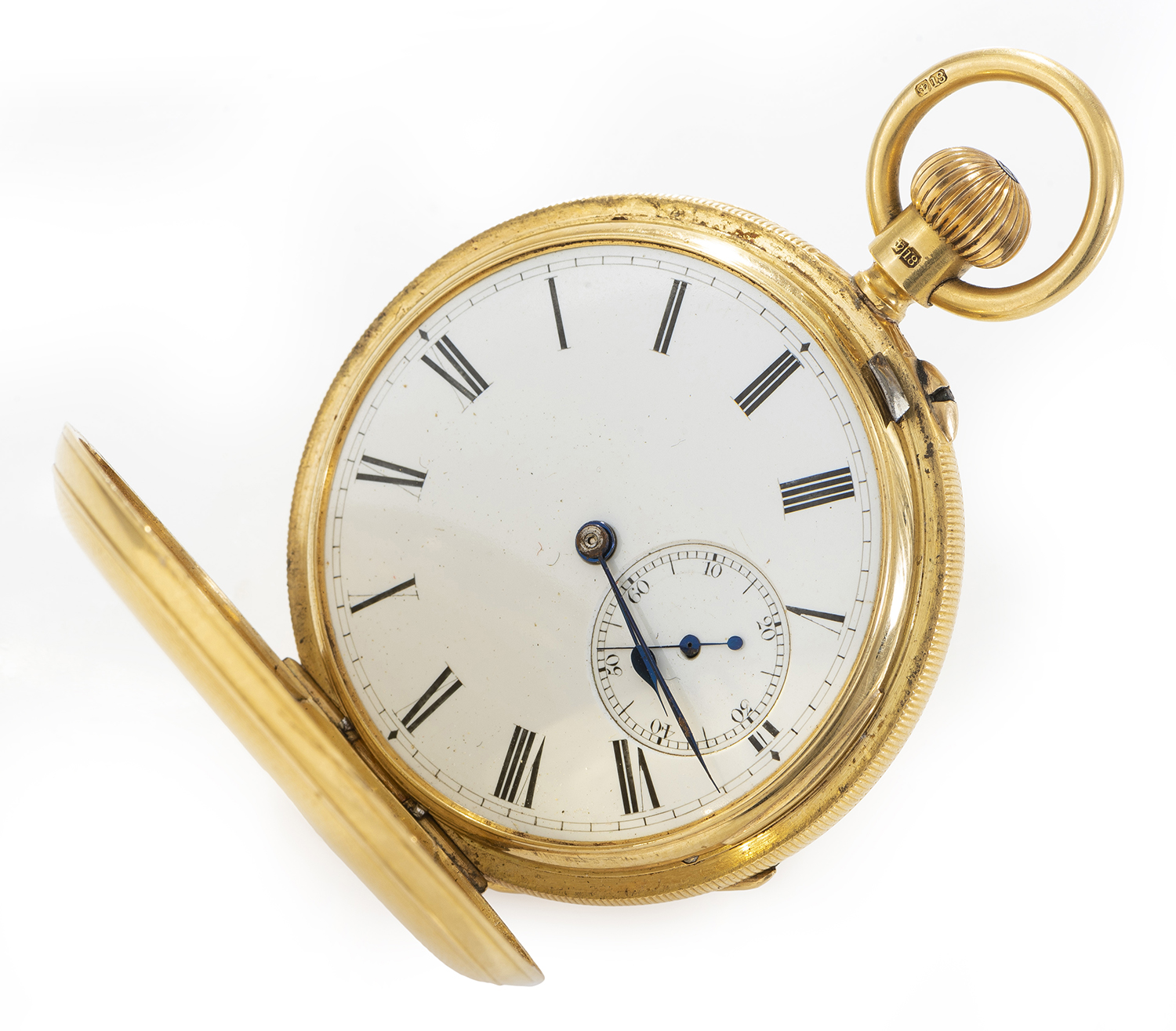 Crown wind movement, circular dial with Roman numerals, to an engine turned 18ct gold case, hallmarked London 1952-53, 40mm diameter.