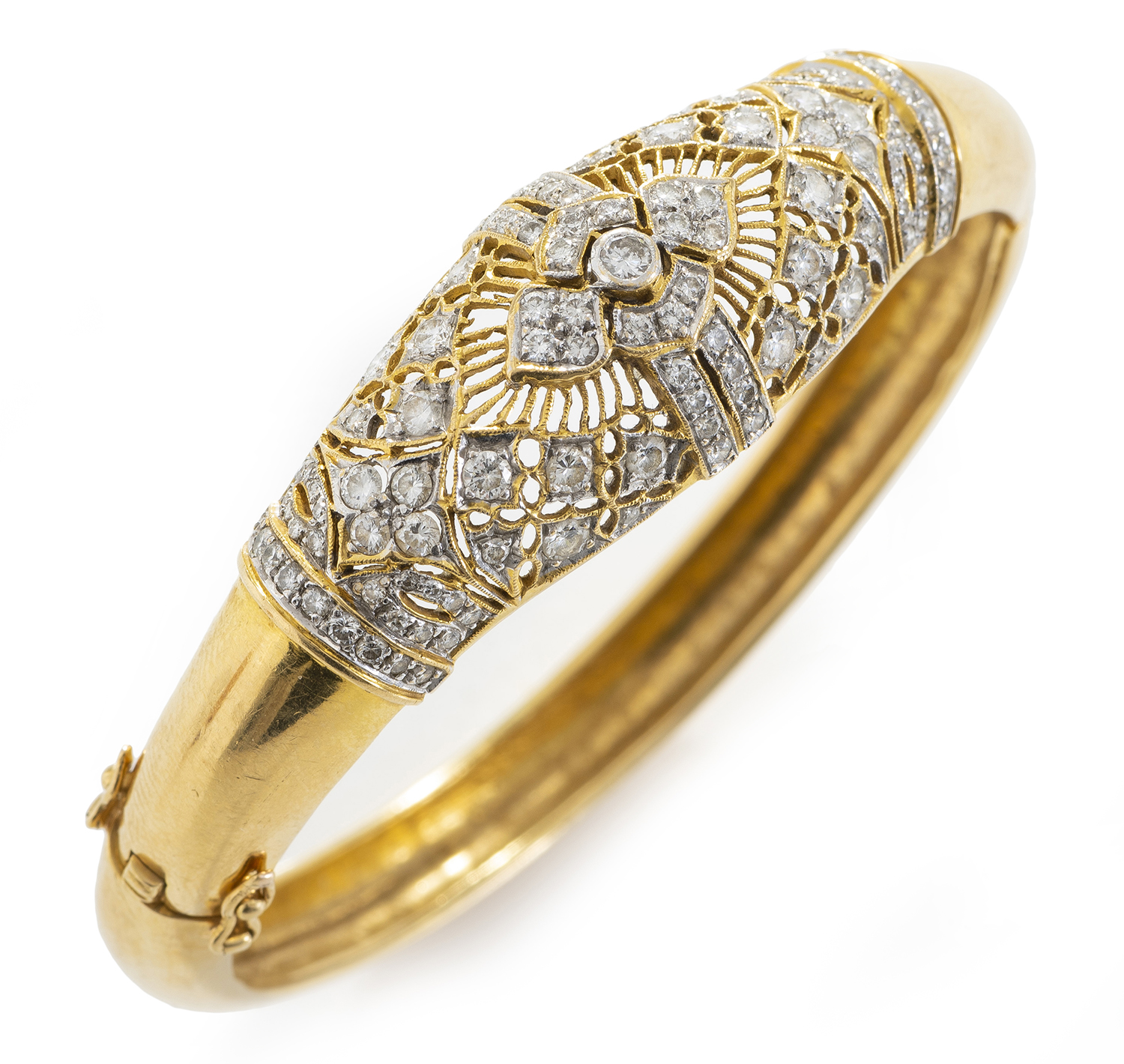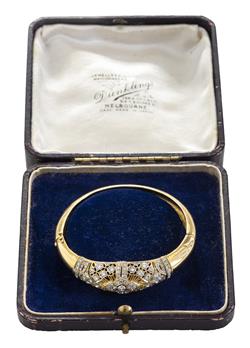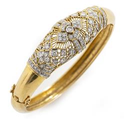 The bangle presents in very good antique condition. All stones secure in their settings. The gold work displays some discoloration and sctratches consistent with the age of the piece. Total diamond weight estimated in the setting as 1.80cts