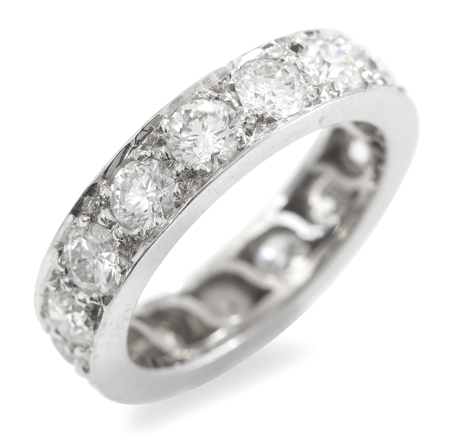 Set with fifteen round brilliant cut diamonds totalling 3.00cts, mounted in 18ct white gold, ring size L.