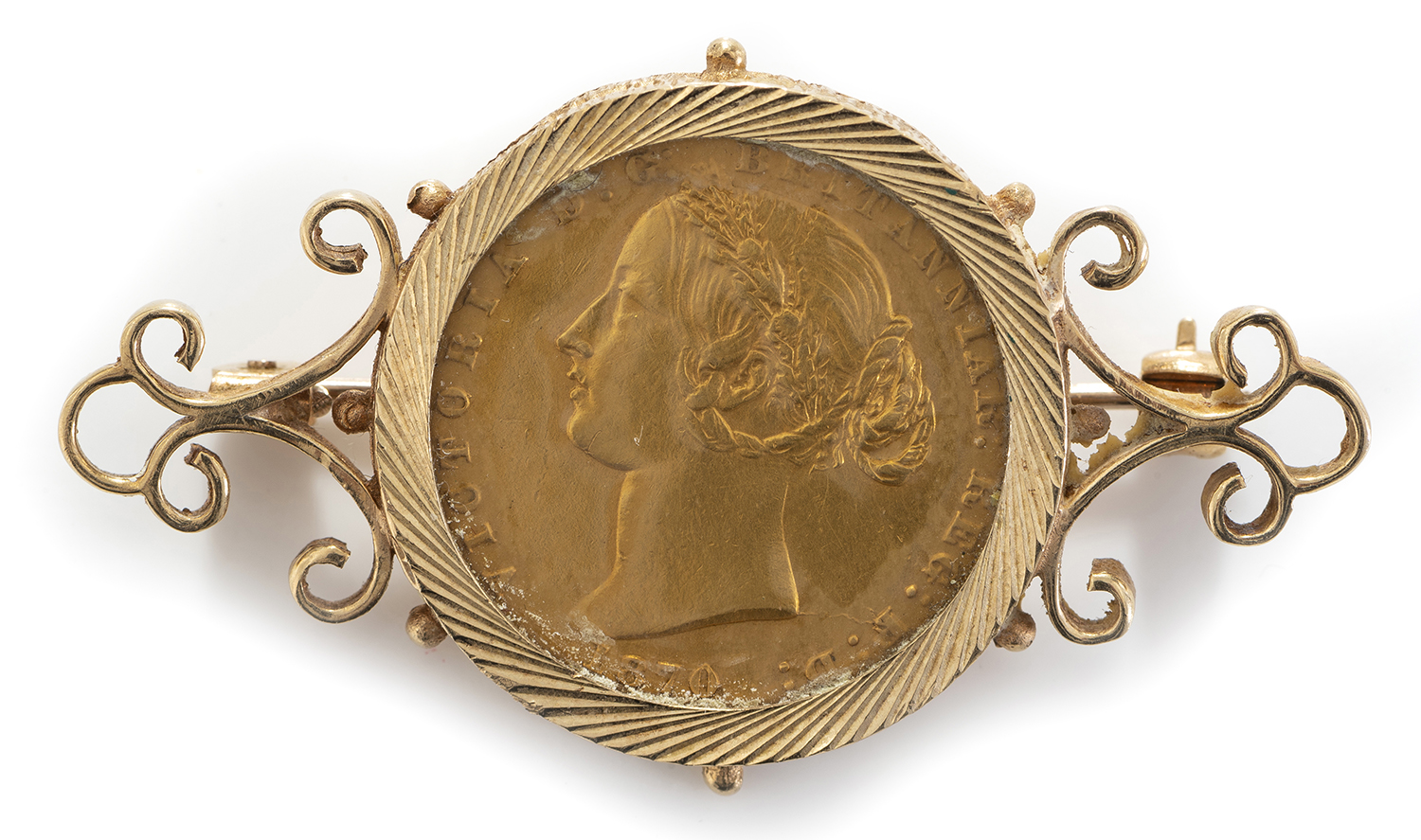 The Sydney mint coin dated 1870, mounted in gold.