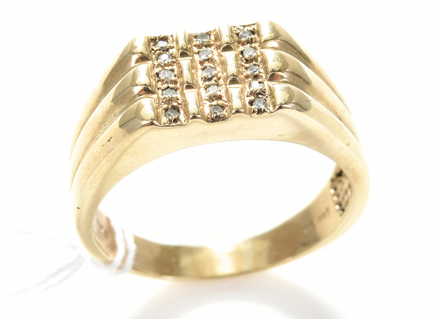 A GENTS DIAMOND RING IN 9CT GOLD.