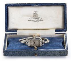Not recently serviced or timed - Not ticking when wound - Overall condition is very good - Dial worn- Some damage to diamonds - Springs is band also need attention - Back engraved Dick 15.4.31 Betty.