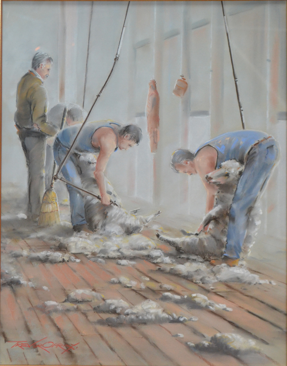 TREVOR OPRAY, SHEARING TIME, MIXED MEDIA, 59 X 46CM