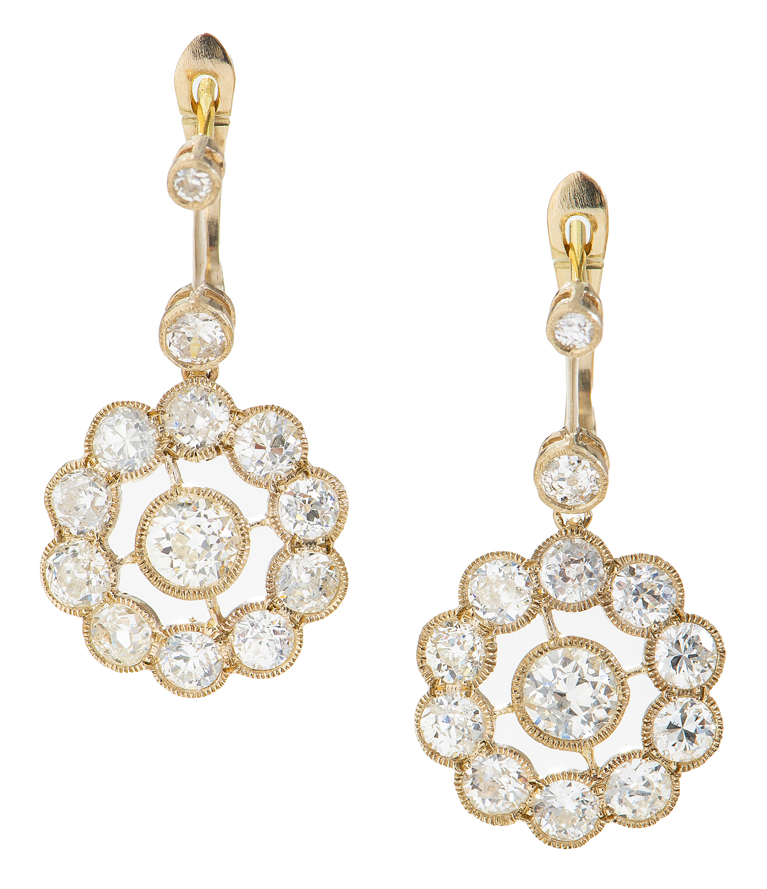 Each set with old European cut diamonds totalling 2.52cts, mounted in 18ct white and yellow gold.