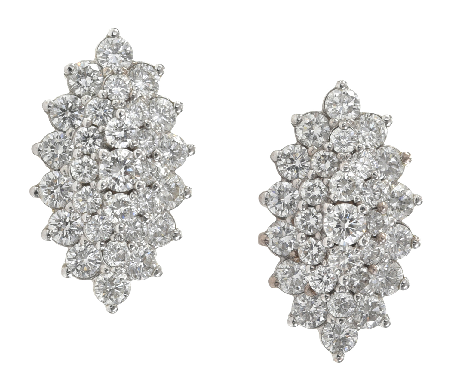 The earrings present in very good vintage condition. All stones secure in their settings. Diamonds of good commercial colour and quality.