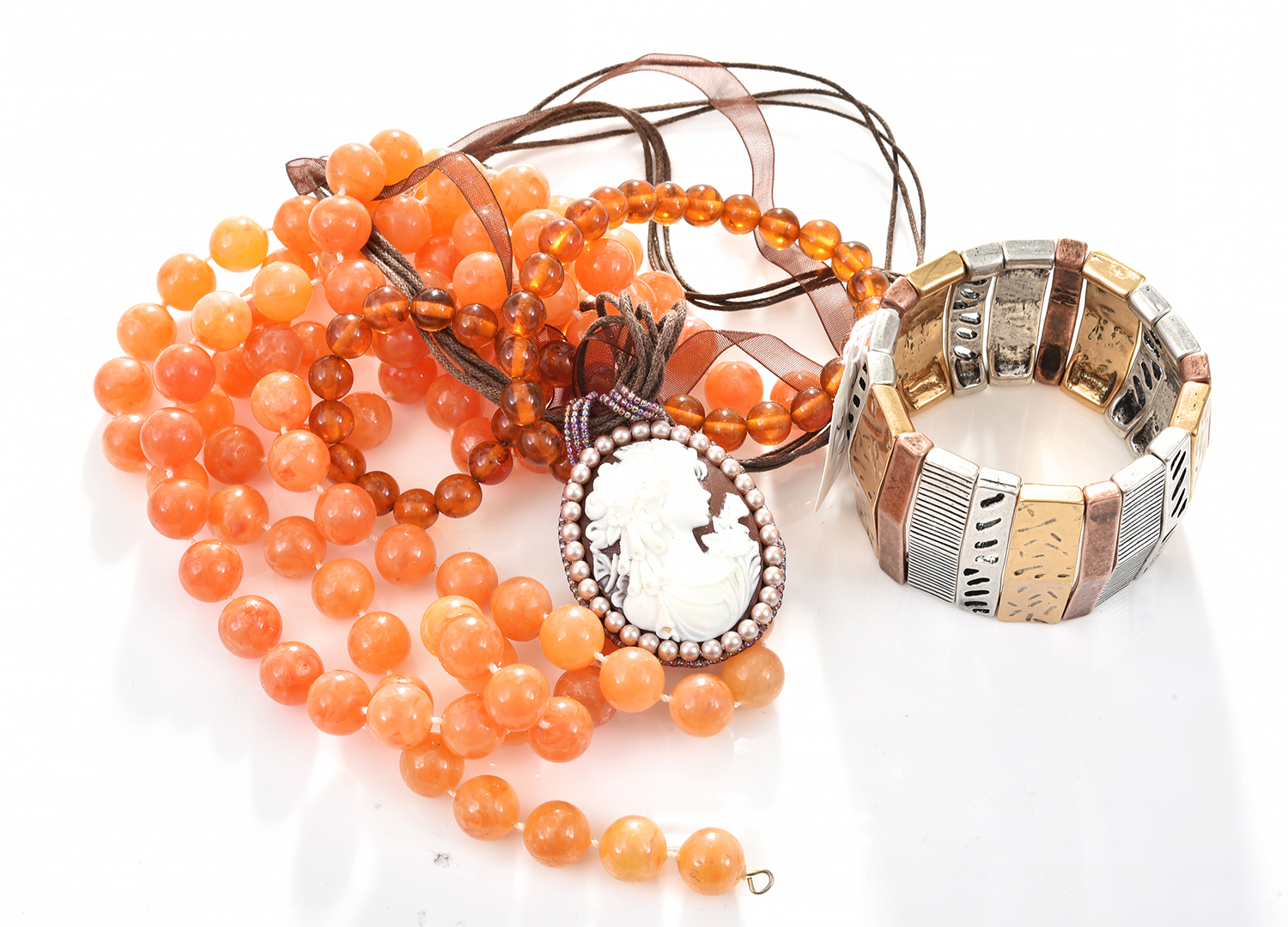 A COLLECTION OF JEWELLERY INCLUDING NECKLACES AND A BRACELET