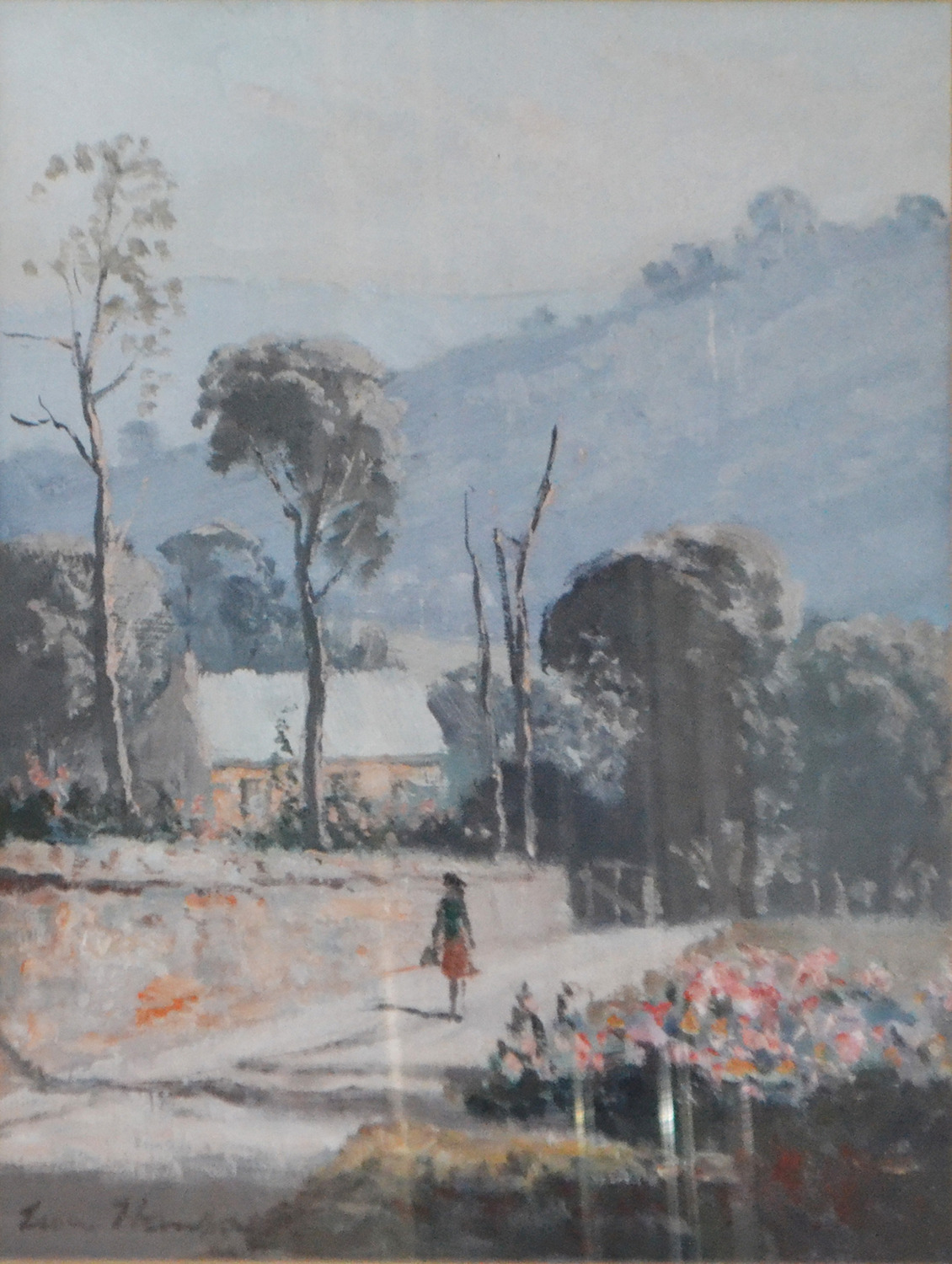 LEON HANSON, THE GARDEN NEAR WARBURTON VIC, OIL ON CANVAS, 29 X 21.5CM SIGNED LOWER RIGHT: LEON HANSON