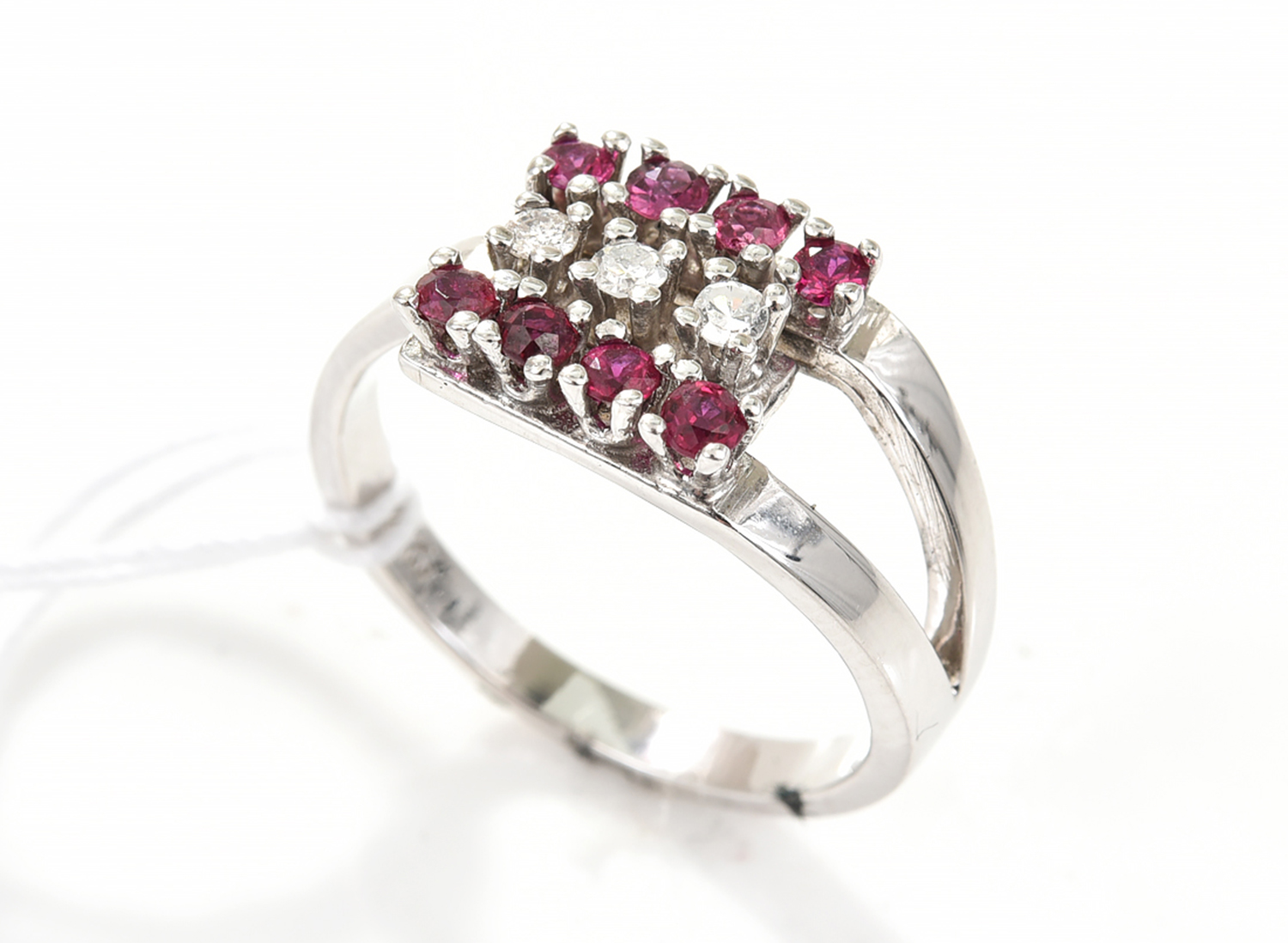 A DIAMOND AND RUBY SET RING IN 14CT WHITE GOLD