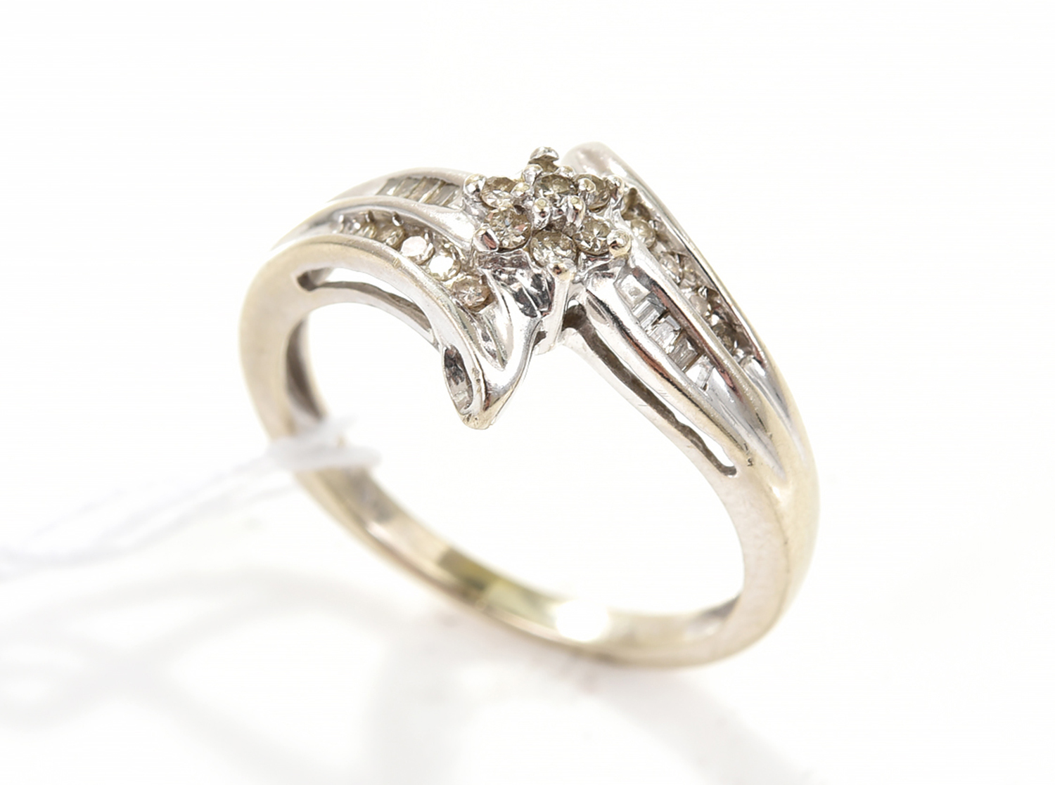 A DIAMOND SET RING IN 9CT WHITE GOLD