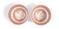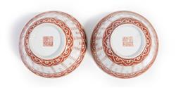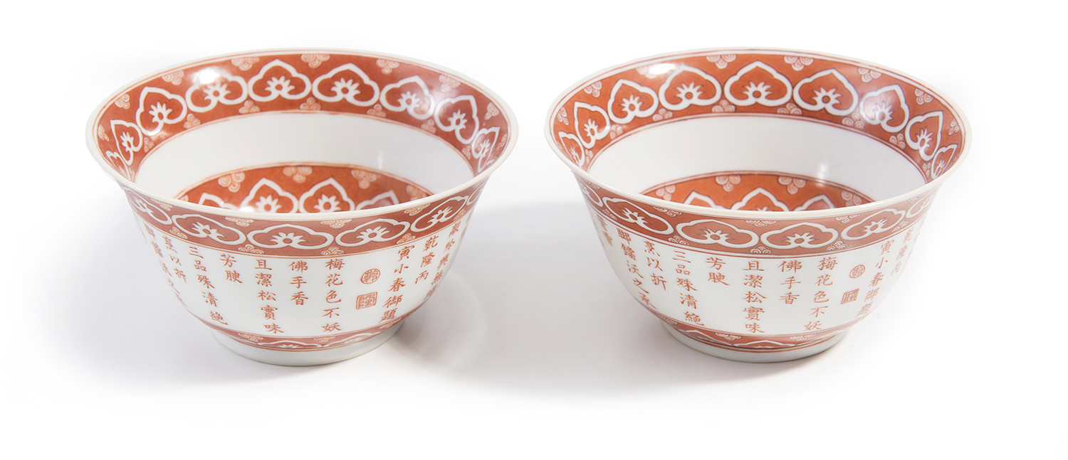 A PAIR OF CHINESE INSCRIBED IRON RED DECORATED BOWLS