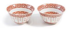 Appears to be no visible faults or damage to either bowl. One bowl is exhibits a slightly darker iron red enamel than the other bowl. One or both of the bowls possibly 20th century.
