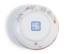 Very finely painted in famille rose enamels with narcissus, plum blossom, camellia, mallow and chrysanthemum flowers. With a well executed Yongzheng four-character mark in blue enamel within a double square to the base.