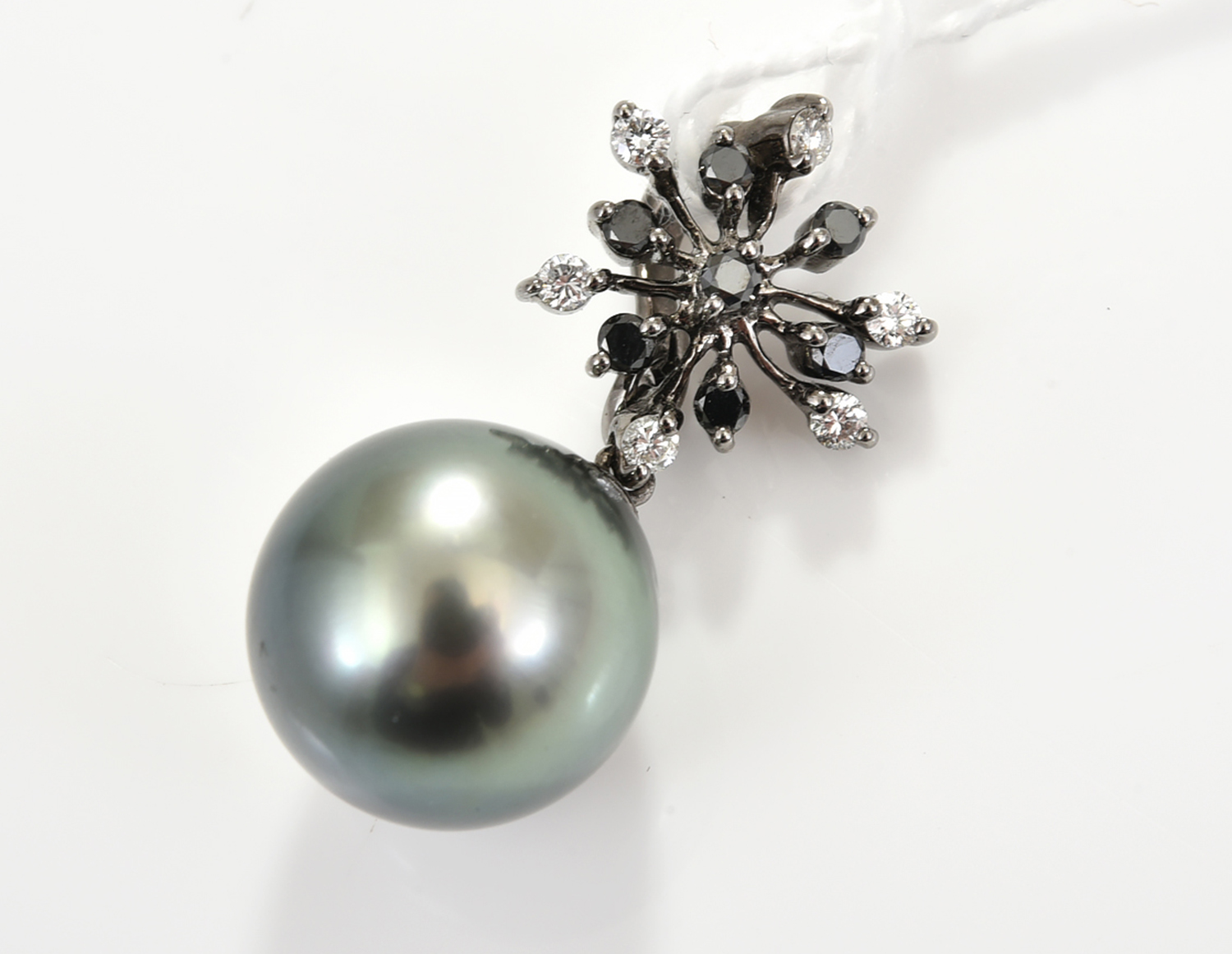 A TAHITIAN PEARL PENDANT WITH A BLACK AND WHITE DIAMOND BALE