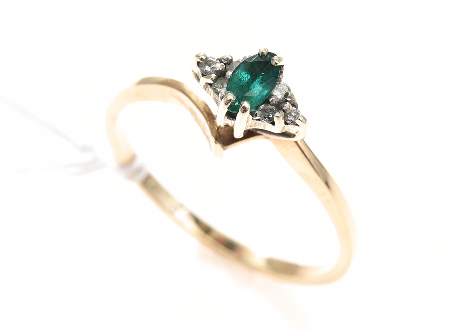 AN EMERALD AND DIAMOND RING IN 9CT GOLD.