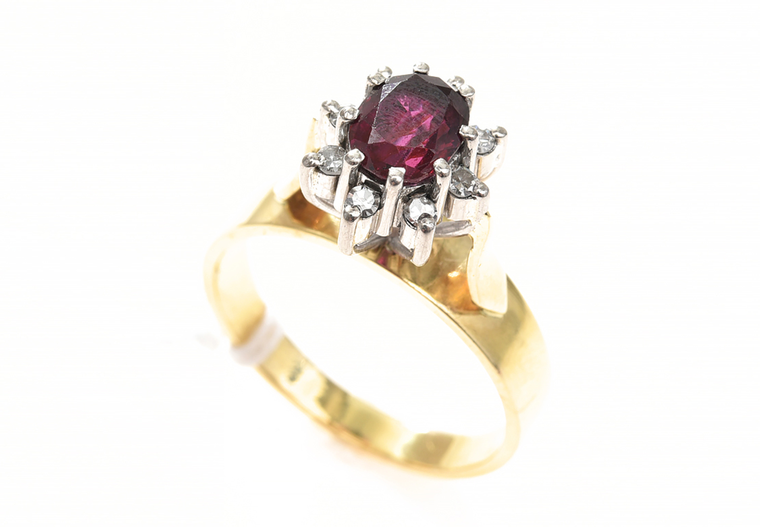 A RUBY AND DIAMOND RING IN 18CT GOLD.