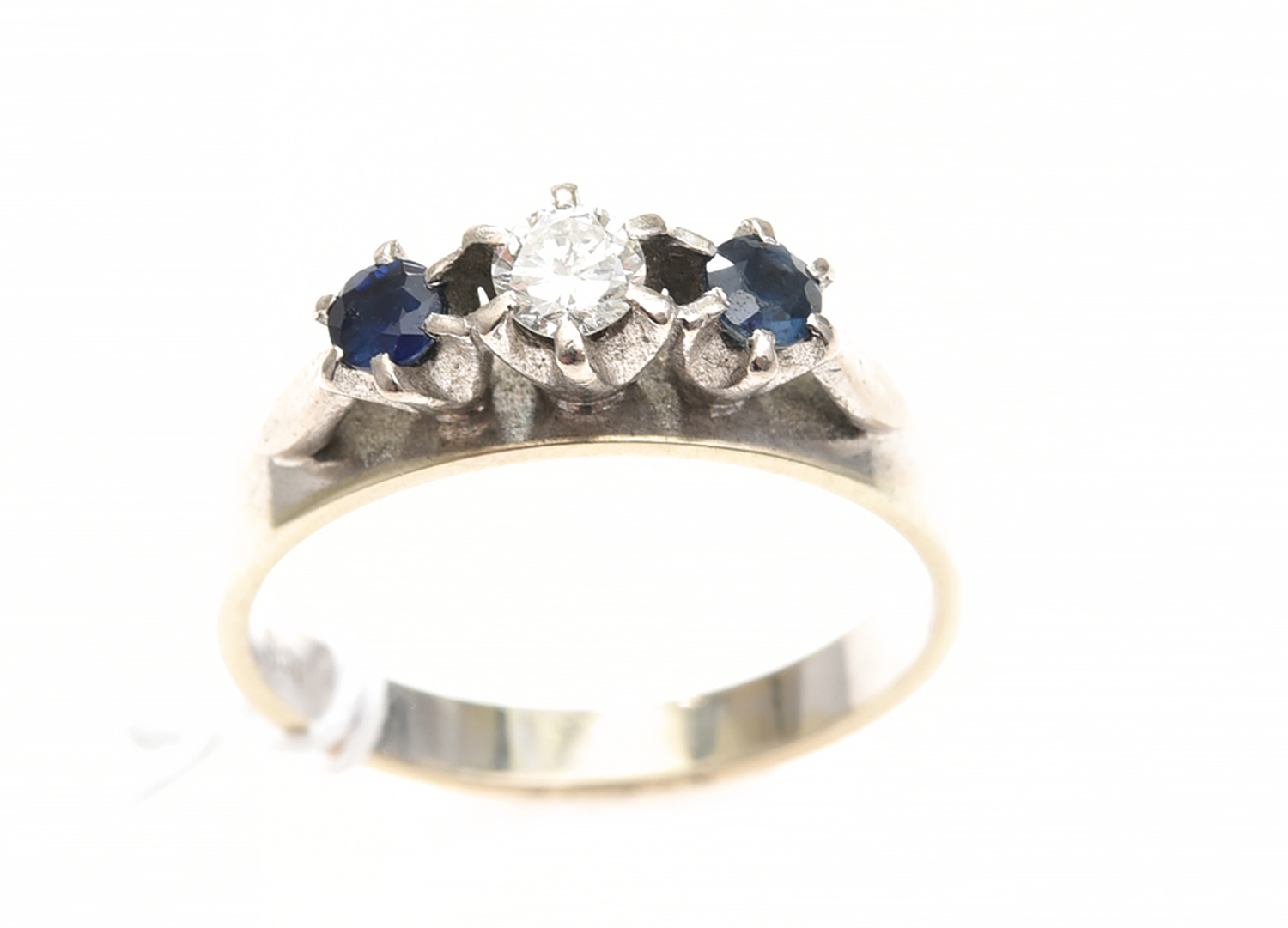 A SAPPHIRE AND DIAMOND RING IN 18CT WHITE GOLD.