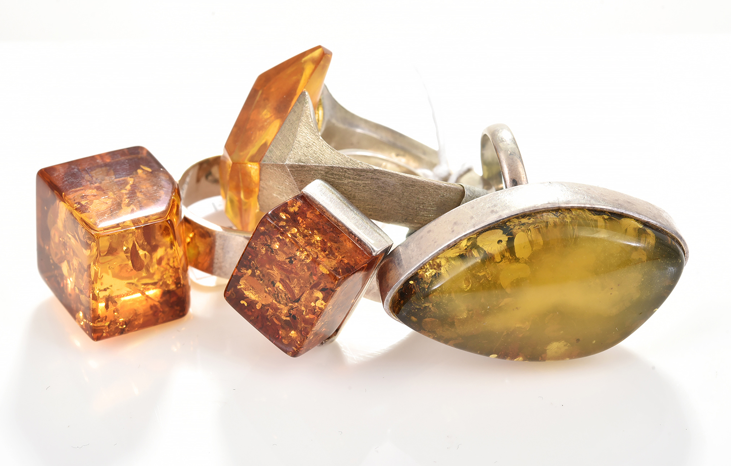 TWO DESIGNER RINGS SET WITH AMBER, ALL IN SILVER