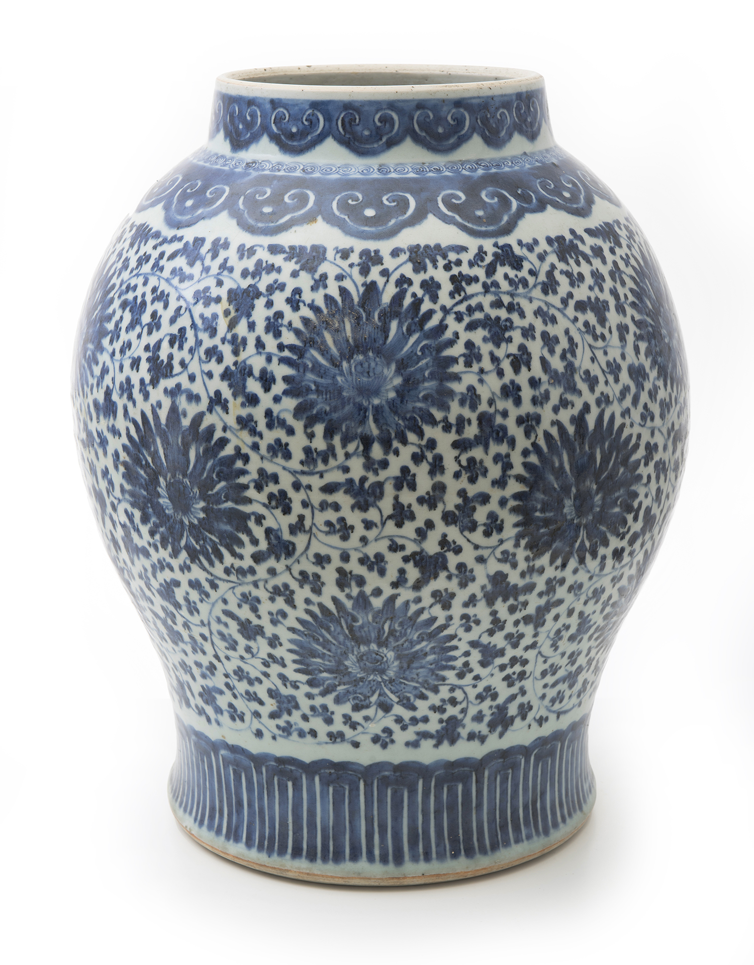 A VERY LARGE CHINESE BLUE AND WHITE JAR