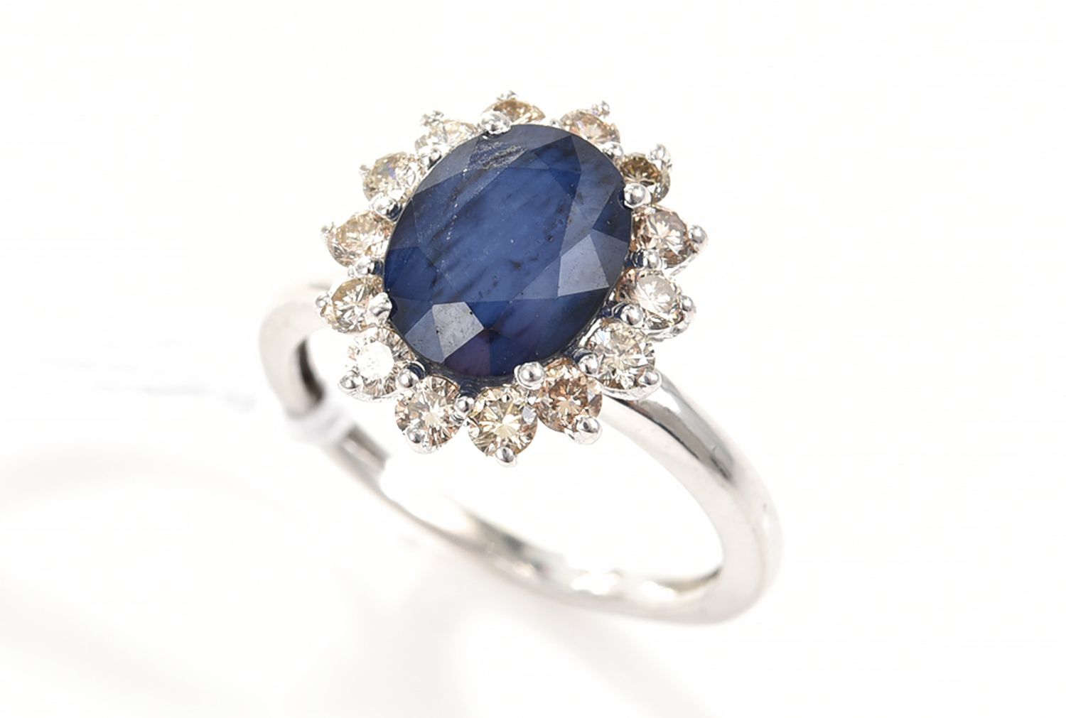 A SAPPHIRE AND DIAMOND RING OF APPROXIMATELY 0.42CTS, IN 9CT WHITE GOLD.