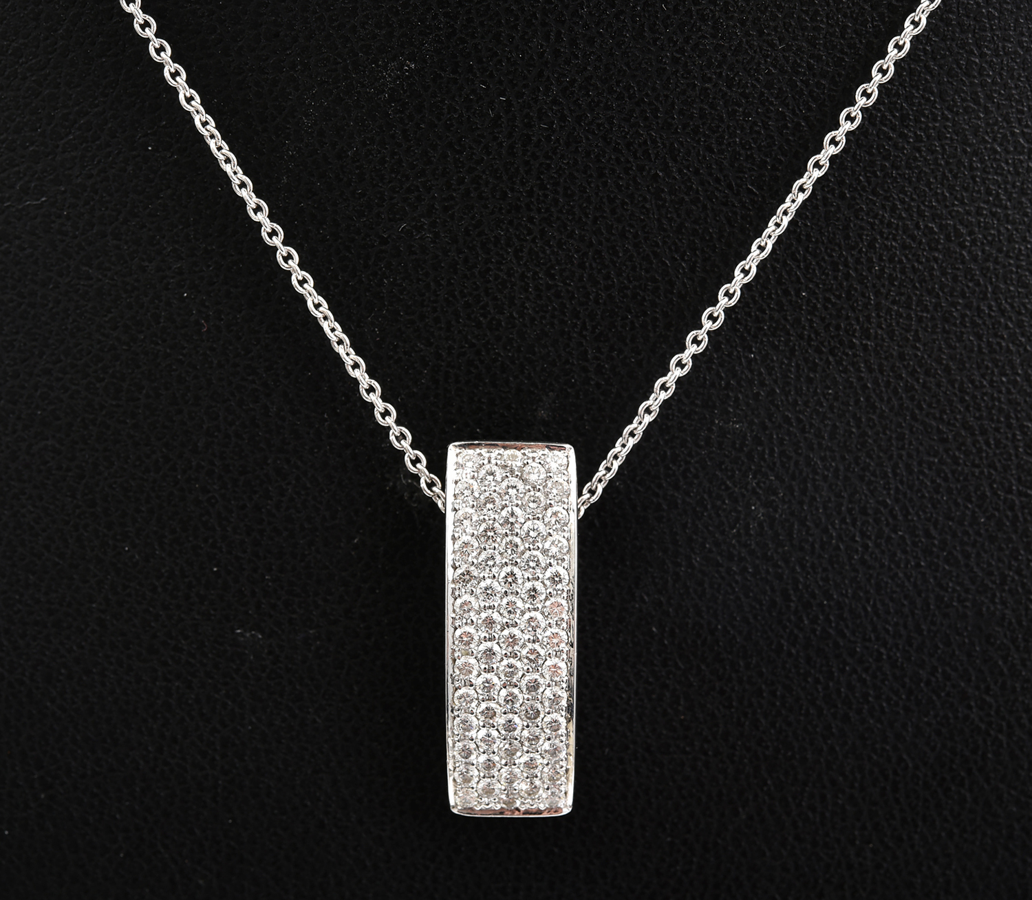 A CASA GI PAVE DIAMOND SET BAR PENDANT, TOTALLING APPROXIMATELY 0.67CTS, IN 18CT WHITE GOLD TO A FINE TRACE CHAIN.
