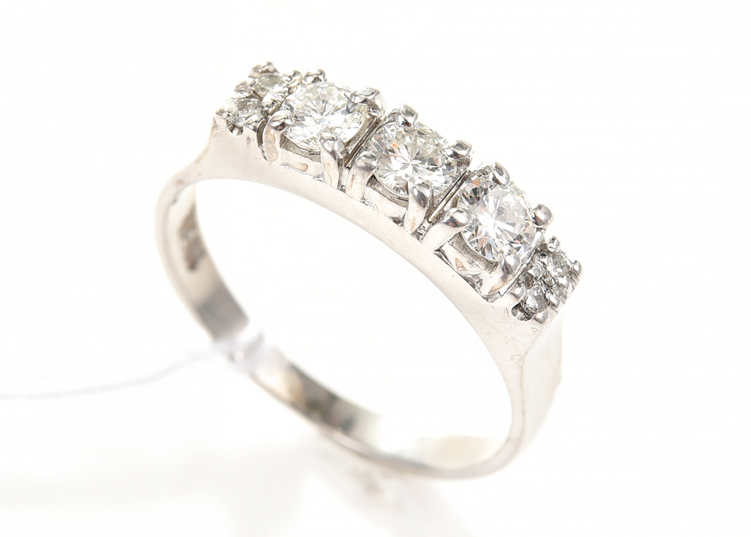 A FIVE STONE DIAMOND RING, TOTALLING APPROXIMATELY 0.65CTS, IN 18CT WHITE GOLD