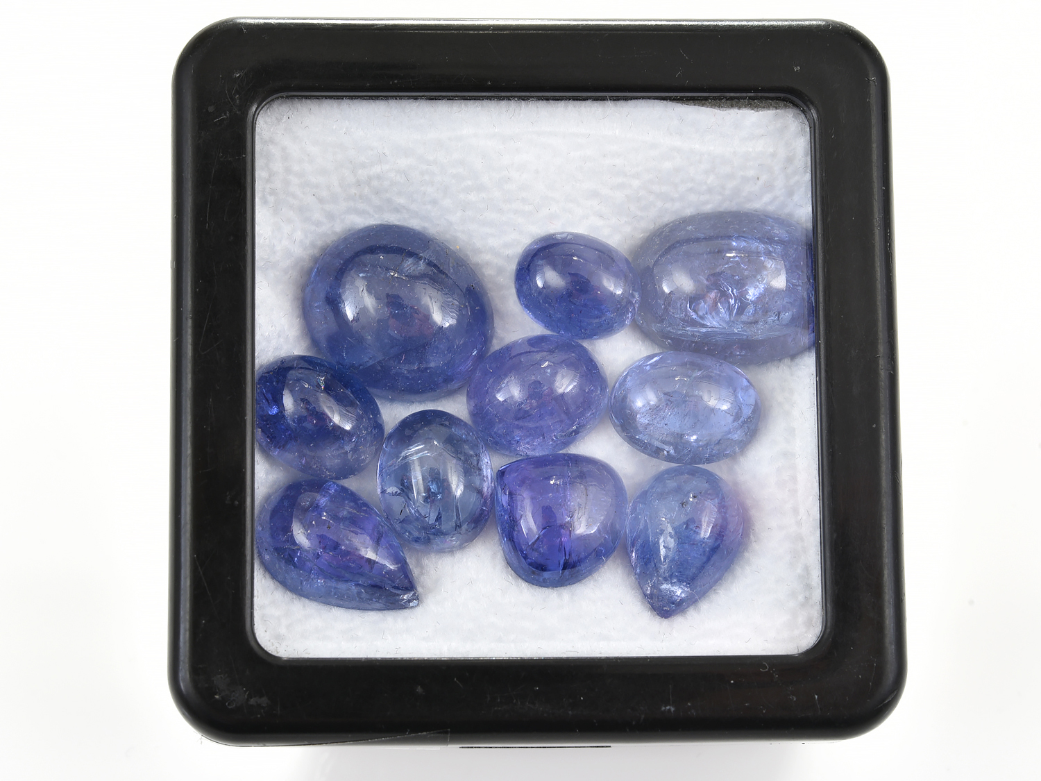 A COLLECTION OF TEN LOOSE TANZANITE STONES, CUT EN CABOCHON, TOTALLING 76CTS.