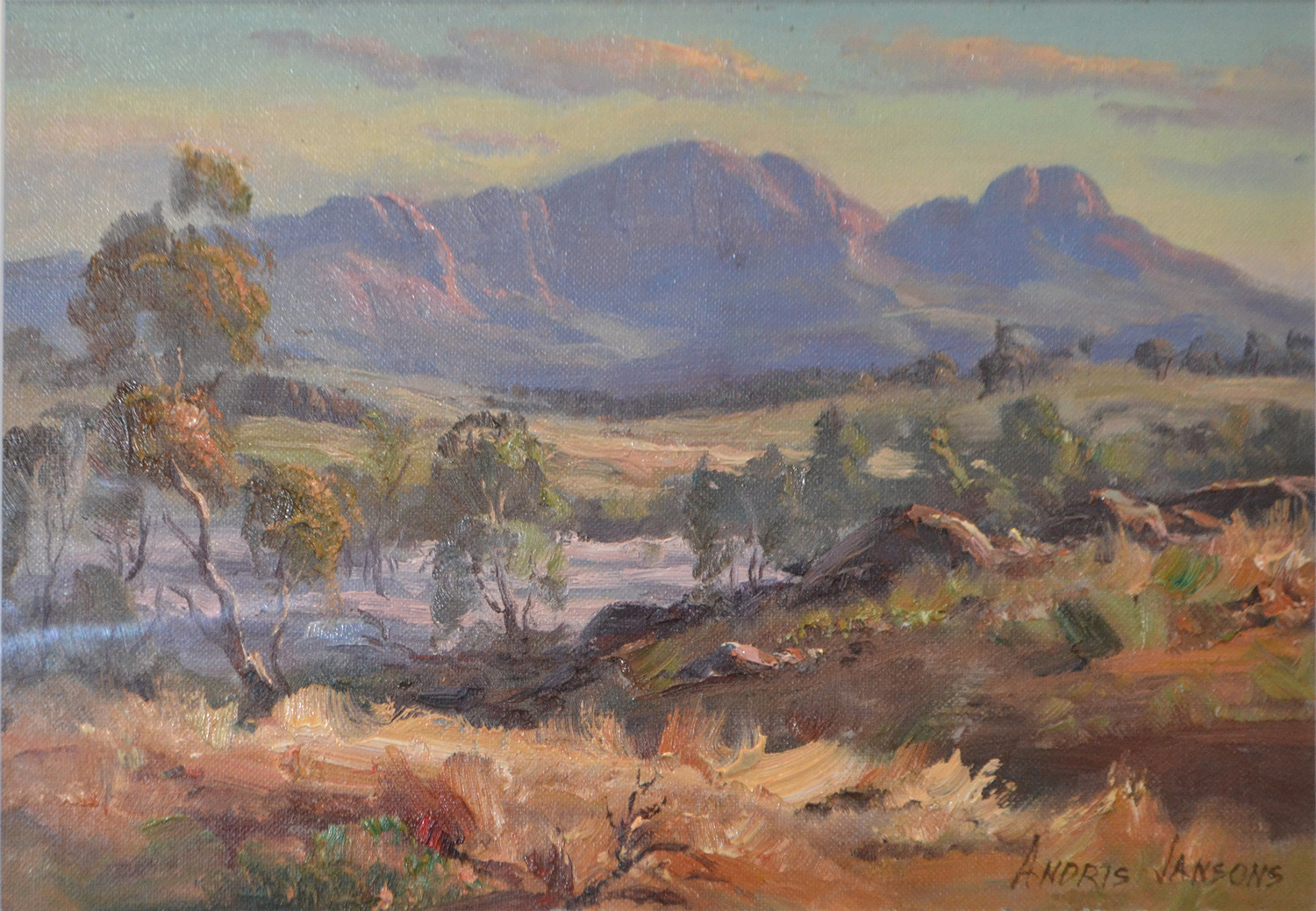 ANDRIS JANSONS, TOWARDS MOUNT SONDER, NORTHERN TERRITORY, OIL ON CANVAS BOARD, 24 X 33 CM