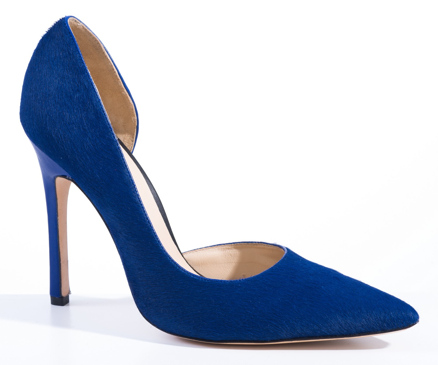 Styled in blue ponyhair with leather heel, size 39, boxed.