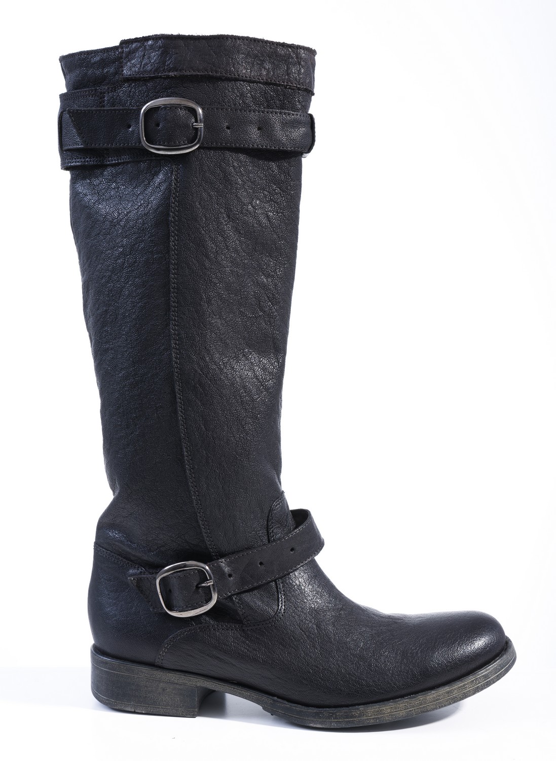 Styled in black leather with silver metal buckle detail, size 41, boxed.